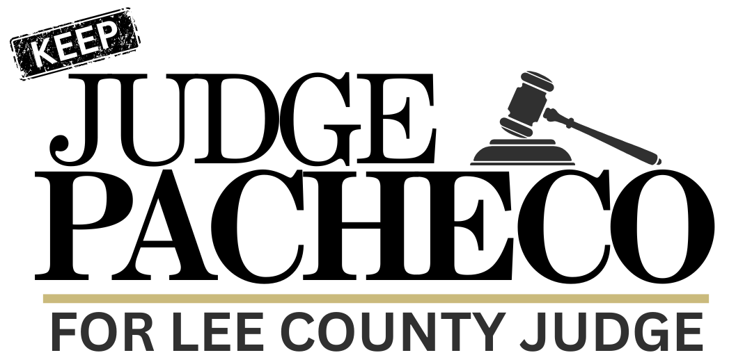 Paid by Javier Pacheco, Non-Partisan, for Lee County Judge. This page is maintained by the Judge Pacheco Campaign Committee. Contributions to the Campaign are being solicited by the Judge Pacheco Campaign Committee. $1000 max contribution per person or business entity. Contributions are not deductible for federal income tax purposes.